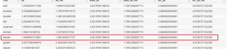由上表可以得到FIL的PE为1.45,板块的PE水平为2.02,BTC的PE水平为4.37。根据PE的定义PE越小盈利水平接近。