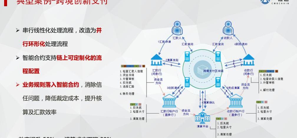 他用区块链跨境创新支付平台的案例,来说明开源并非完美。最早的跨境支付是通过SWIFT网络来完成,但存在费用贵和汇款速度慢等痛点。招商银行在境内境外都有分行,从2017年起通过基于区块链的跨境支付平台,将业务规则写入智能合约,以提升跨境支付的核算和汇款效率,降低清算成本。