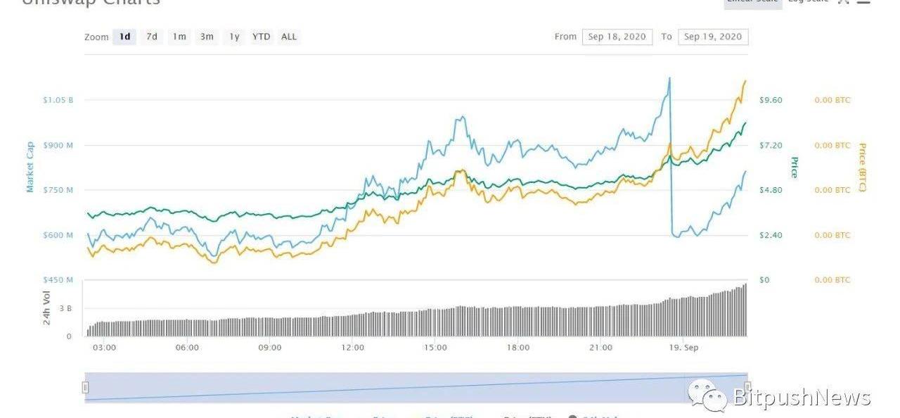 Uniswap代币的火爆还带来了意想不到的结果,多个简称为“UNI”的代币的价格以及交易量纷纷上涨。