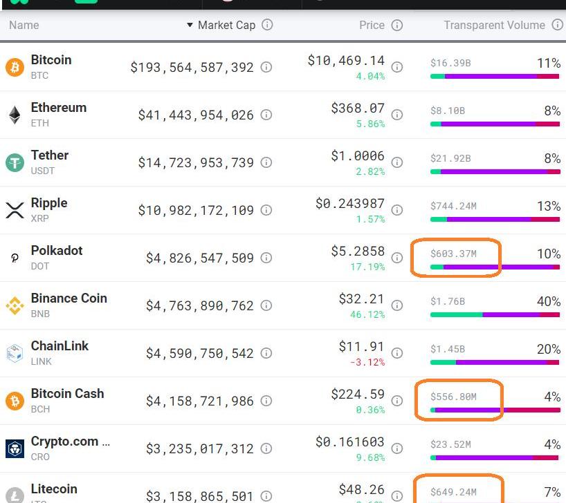 尽管DOT代币在各大交易所上线还不到30天,但即便是对于专业交易者来说,它也是引入注目的。有趣的是,其每周6亿美元的透明交易量与BCH、LTC等老牌加密货币不相上下。