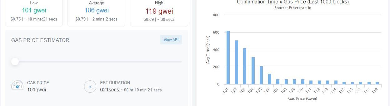 在玩家的疯狂刮奖之下,以太坊毫不意外的堵了,Gas费短时间内迅速增长,13$的刮刮乐逼近了20$。