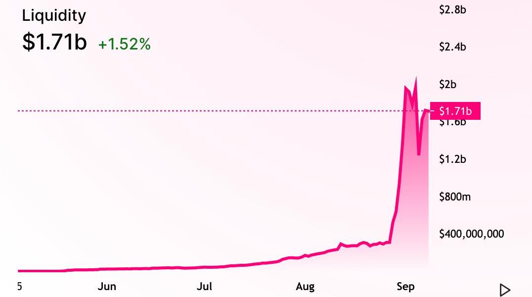 SuShi目前的交易价格为$2.72,因为它正在等待自己的功能性AMM的迁移,这应该在美国东部时间9月9日上午10点左右进行。目前,SushiSwap的合约中有13.2亿美元的价值押注,约占Uniswap流动性的77%。到目前为止,Uniswap的成交量在9月1日达到峰值,为9.536亿美元。昨天,Uniswap录得4.39亿美元的成交量。