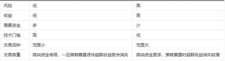套利者多相信均值回归,趋势交易者更相信马太效应。所以套利交易者更加愿意寻找收益率平稳的资产,找到收益率具有平稳性质的资产或是协整性好的资产组合就意味着收益。趋势交易者更愿意找到趋势显著稳定的资产,找到这类资产可以做波段的交易。套利交易和趋势交易本身没有优劣之分,只是投资者对风险的厌恶不同导致了存在不同的交易方式。以下是总结的几点区别: