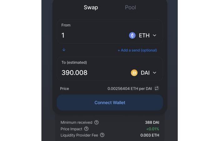 -UniswapV2用户界面上ETH/DAI交易对的汇率-