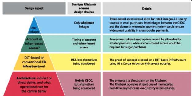 与其他央行一样,瑞典央行研究了几种技术和方法。目前,它正在开发e-krona项目的概念证明。同样,CBDC将作为现金的补充,而不是现金的替代品。目前瑞典银行概念证明的架构是一个混合式CBDC。