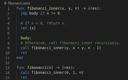 Cairo程序要用到类似汇编语言的、也叫Cairo的语言来编写,而Cairo语言具有以下功能:内存、函数调用、递归和分支条件。Cairo还用到了证明器端的「hints」来创建快捷方式并启用特定计算。我们说Cairo是生产级的,我们说的不仅是即将到来的主网部署,更是我们为此构建出的强大开发环境,包括一个从Cairo语言到Cairo字节码的编译器、一个用于模拟Cairo执行的虚拟机、调试器、集成开发环境、还有上述提到的用Solidity编写的单一验证器智能合约。