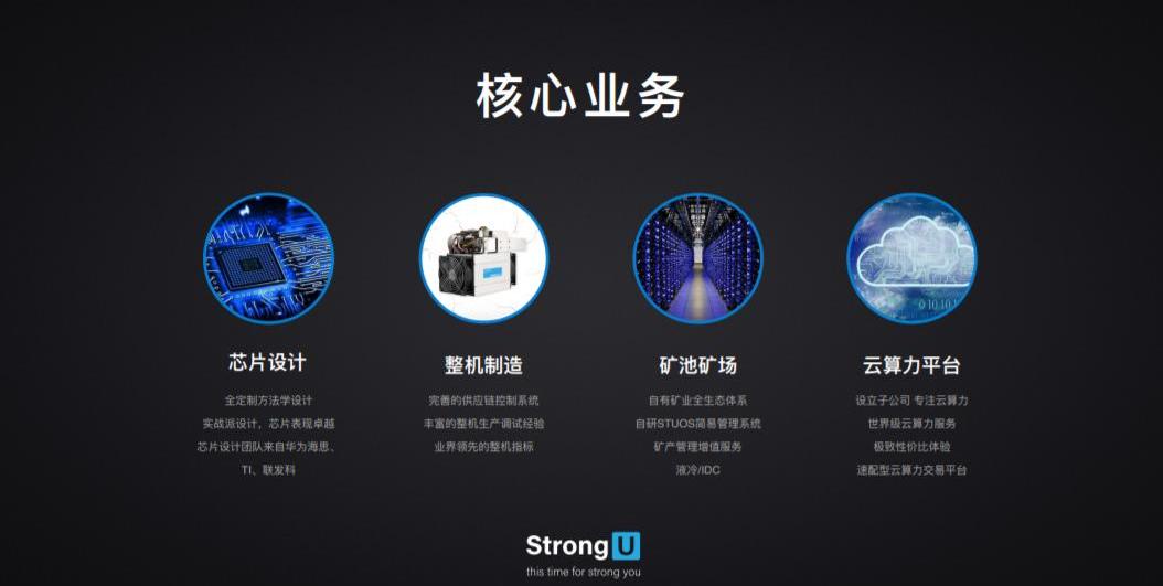 我们第一个产品一定是基于我现在的行业,这个是目前公司核心业务的简单介绍,主打当然是芯片设计。我们拿回芯片之后做整机制造,因为现在这个公司的主打产品是以加密货币算法芯片为主,所以我们也为之配套了相应的矿池和矿场。在未来,基于科银在行业里的产业布局,我们会推出基于矿机厂商本身的云算力平台,我们也会结合科银现在已经在行业里的完备布局。比方说在座有很多人知道我们在一些交易方面的布局,我们的团队经历了从13年一直到现在整整6-7年的考验,已经逐步成长为这个行业的中流砥柱,所以未来我们会跟这些科银体系公司进行深度合作,推出更多更好的基于现有产品的金融以及其他方向。
