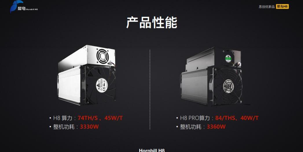 下午,科银资本董事长以及思创优STUCEO程剑波在会议现场发布了新版矿机HornbillH8。H8采用了三星8纳米芯片,芯片型号是MS1953,整机算力可以达到74T/s,整机功耗:3330W。在正常模式下,整机的参数大概是45W/T,在低功耗模式下,仍旧可以达到40W/T。