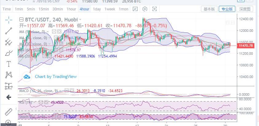 日内比特币进入高位震荡,高点触及11580小幅回调,价格波动范围在百余点,多头日内并未有明显突破,短期震荡行情预计还将延续。