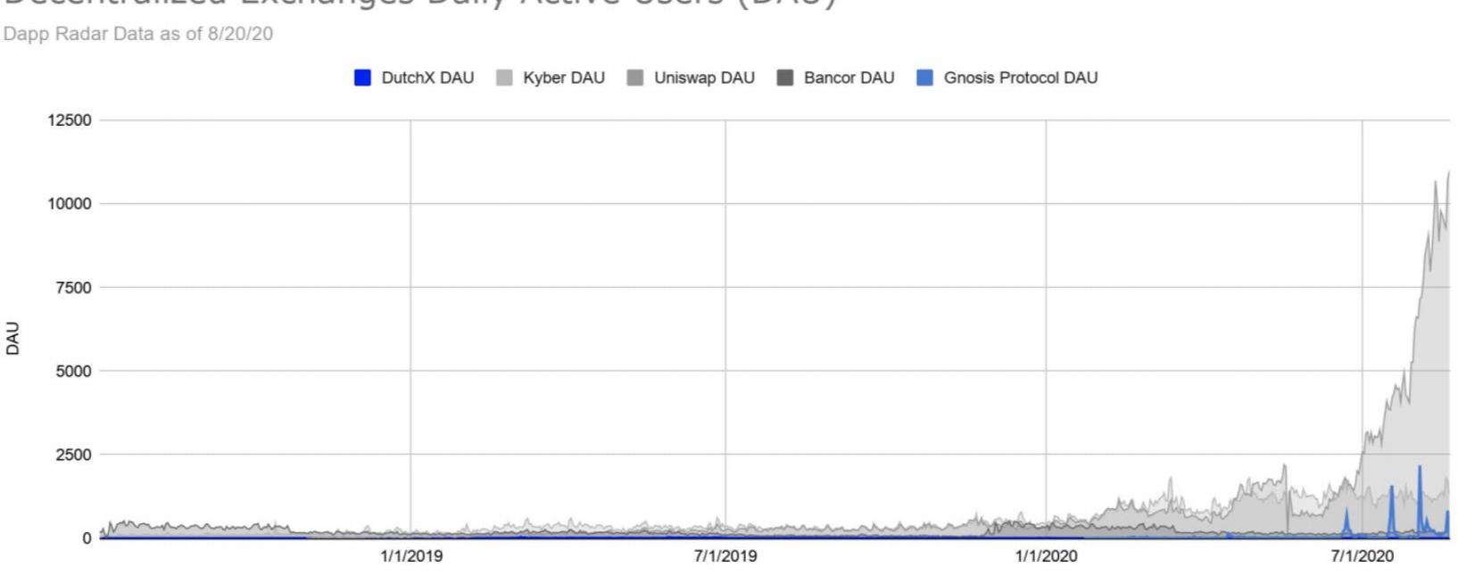 近几个月来,DEX的交易量开始飙升,但增长主要是由Uniswap和Balancer等更新的市场平台推动的。