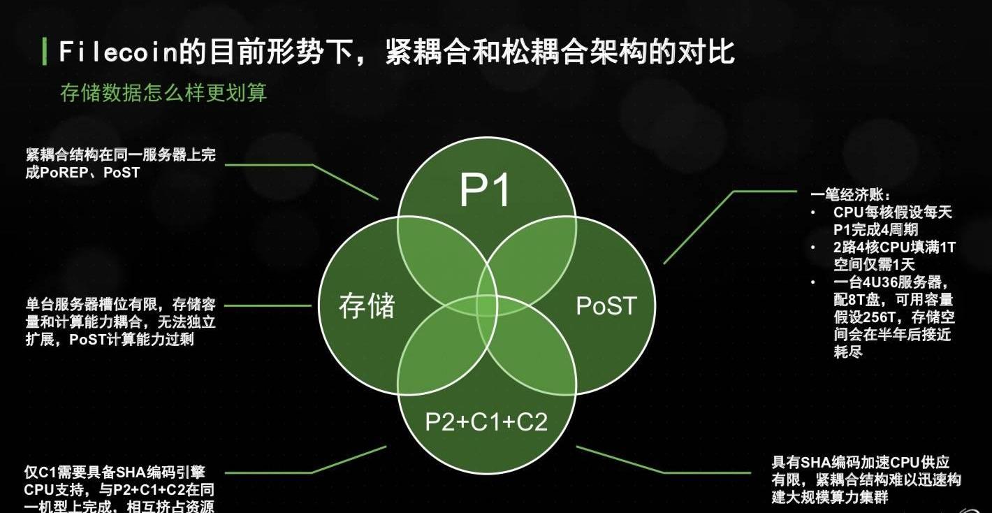 分享一下我个人对于IPFS存储的思考,我注意到今天参与活动的规格差异非常大。对于希捷而言,从P1到C2的过程并不是我们关心的阶段。现在有很多矿机是所谓的紧耦合的结构,就是把上面这几个阶段统统放在一个盒子里处理。