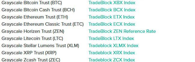 阿风:首先来说这些符号的具体意义。每一个符号都代表了一种加密货币信托产品,比如GBTC就是比特币信托,ETHE就是以太坊信托,LTCN就是莱特币信托。