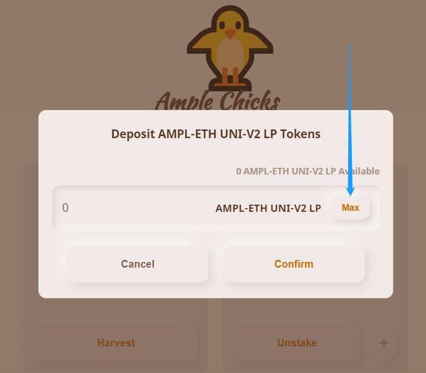 3.在sushiswap中抵押AMPL-ETH流动性池子