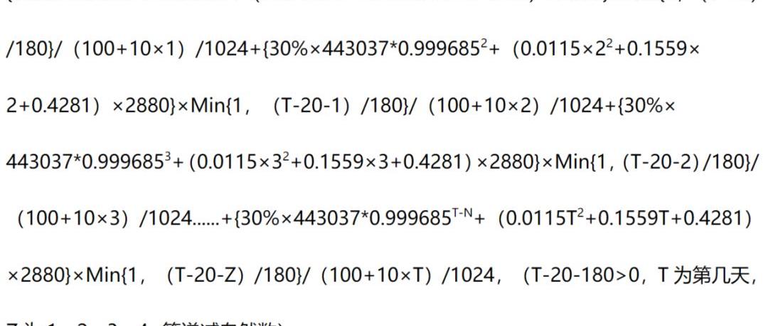 所以对于90天以后的网络基线日供应量,因为实际网络情况部分难以计算,暂定以基线网络与自然衰退一样,则简单供应部分+网络基线部分为V日=30%×443037*0.999685n。