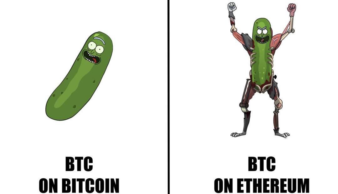 社区流传的Meme:原生BTC与以太坊上锚定BTC对比|来源:网络
