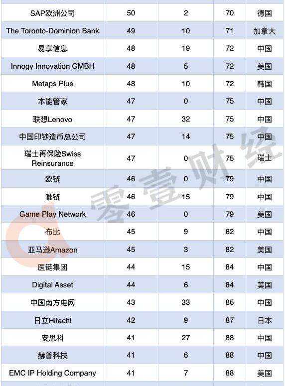 二、2020年区块链专利排行榜TOP100,52家中国公司入榜