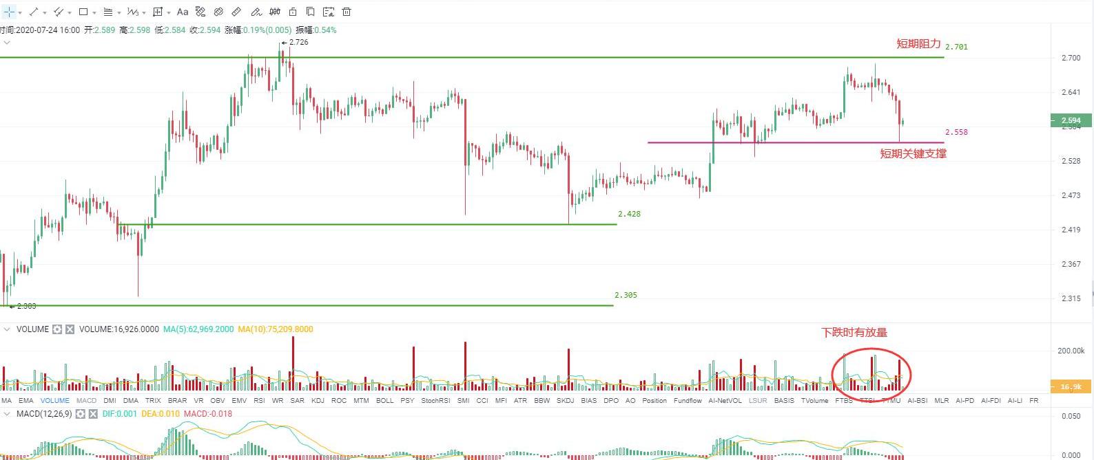 主观预期:预估未来两天币价主要在2.56-2.7区间的下半部分波动,而且有较大可能会短时间破位2.56,不过出现单边下跌概率不大。本段不作为交易策略参考。