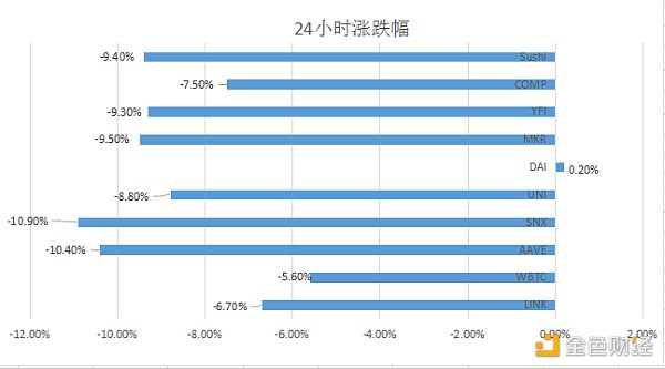 市值前十币种涨跌幅,金色财经制图,数据来源Coingecko