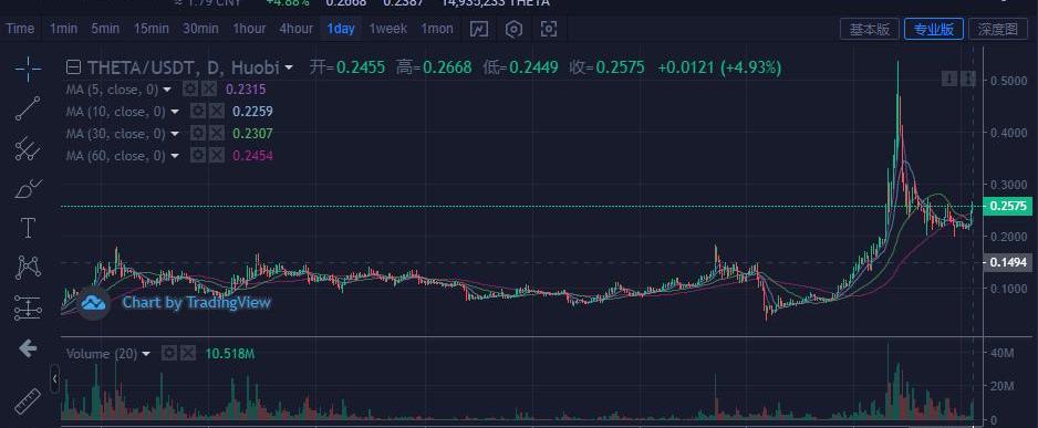 首先是THETA从今年4月开始上涨,成交量也大幅上升,因此受到了更多目光的关注。其实,从K线图可以看出,THETA上线后正值整个数字货币市场的大熊市,即使有优异的基本面和豪华的阵容也无法避免一年多以来的低位横盘,目前THETA还处于价值回归的过程中。短时间的暴涨暴跌是市场情绪的影响,从长期来看,是否能够上涨还需要看项目的基本面。