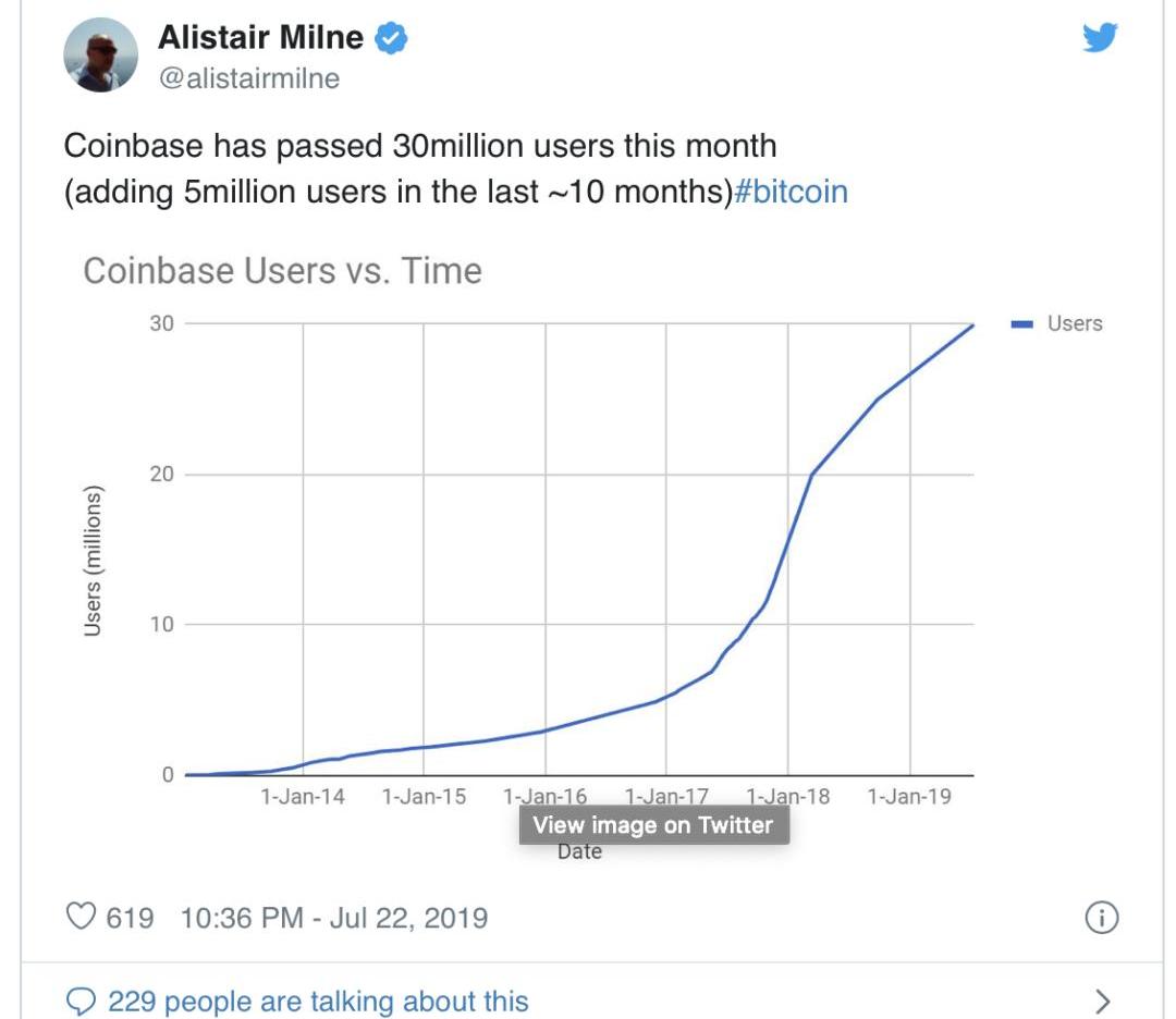 为了更好地处理早期加密货币用户的数量,我们还可以查看Coinbase上的钱包数量。Coinbase是美国最大的加密货币交易所,据报道在2013年初拥有13,000个钱包。所以可以比较肯定地推断在2012年底的时候Coinbase至少有20,000个加密用户。