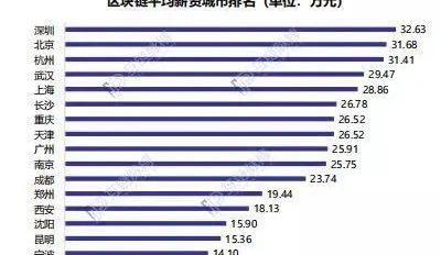 在薪酬方面,2018-2019年区块链应聘者最大期望薪资区别均为50-100万,近半年从业者年薪多处于20-40万之间,其中技术类岗位平均年薪多在33-52万之间,深圳、北京、杭州三地位居区块链平均薪资城市前三甲。