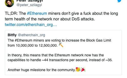 “以太坊矿工不关心网络的长期健康状况,也不关心DoS攻击。”