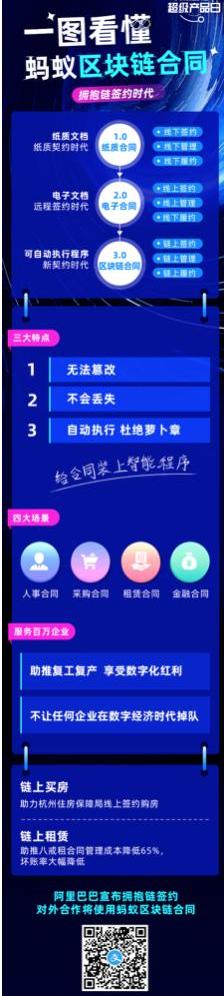阿里巴巴宣布率先践行链签约,将在越来越多对外合作使用中使用区块链合同进行签约,助推更具信任的新契约商业。据悉,去年阿里巴巴和杭州亚组委合作签约时就曾试水链签约。