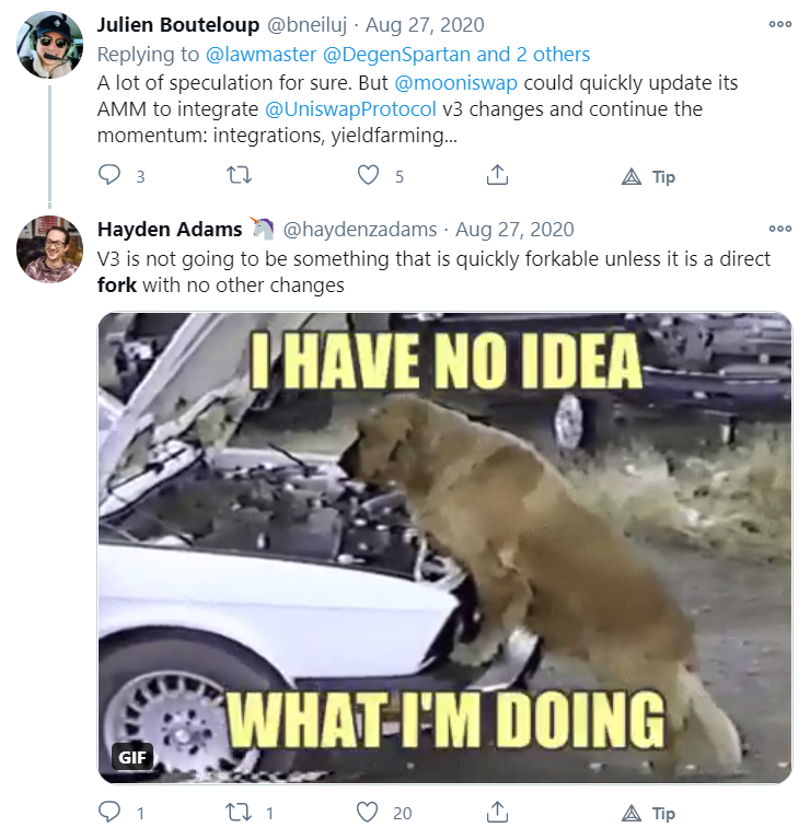 所有这些改进都会令V3在技术上非常复杂,Hayden Adams认为这样会使分叉更加困难,从而对Uniswap有利。因为更多的流动性将留在其平台上,而不是转移到其他“克隆平台”中。