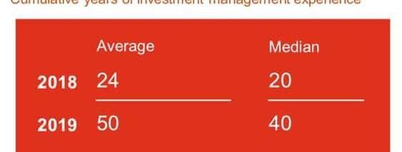 虽然投资团队的平均规模略有增加,从7.5人增加到8.7人,但投资管理经验的平均年限增加了一倍,从24年增加到50年。