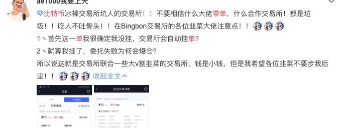 微博用户「@ae1000我要上天」爆料称,在Bingbon交易所中委托挂单失效。