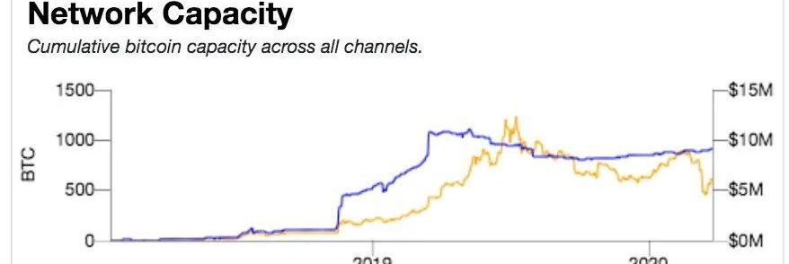 闪电网络从2018年开始正式运行,到现在经过2年的发展时间,虽然网络中BTC的容量从0增长到了924.9个,法币价值为630.7万美元,但是和比特币全网流通量18,298,200相比,占比仅为0.0050546%。
