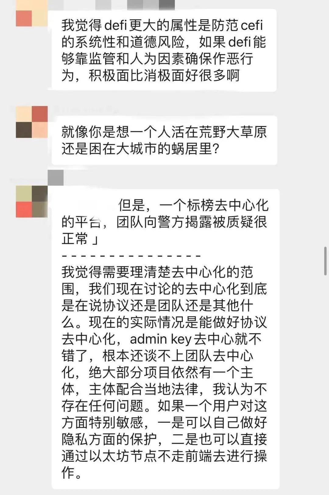 他们潜意识里认为DeFi的存在就是为了消除代理风险,如果有一家公司在承担DeFi协议的代理风险的话,那这个DeFi就和CeFi没什么区别了。