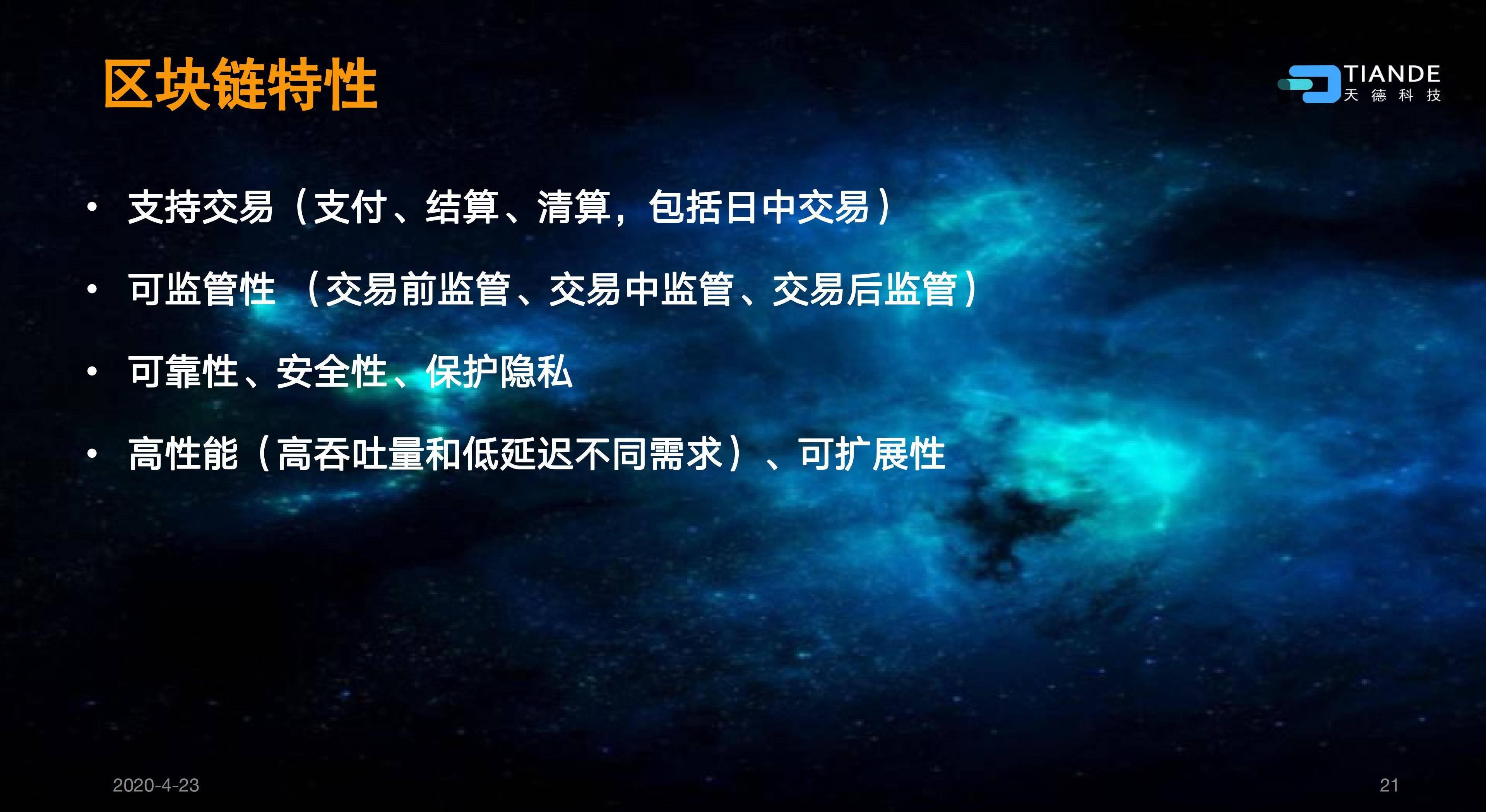 第2个重要特性再来就是监管性,在合规市场,区块链系统必须可以被监管,这包括交交易前监管,交易中也监管,交易后再监管,全程都被监管。