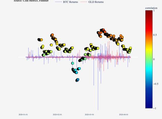 从历史上看,BTC和黄金的相关性并不是很强。但BTC和黄金的相关性也在3月份突然增加,就像BTC和S&P500指数的相关性变化一样。