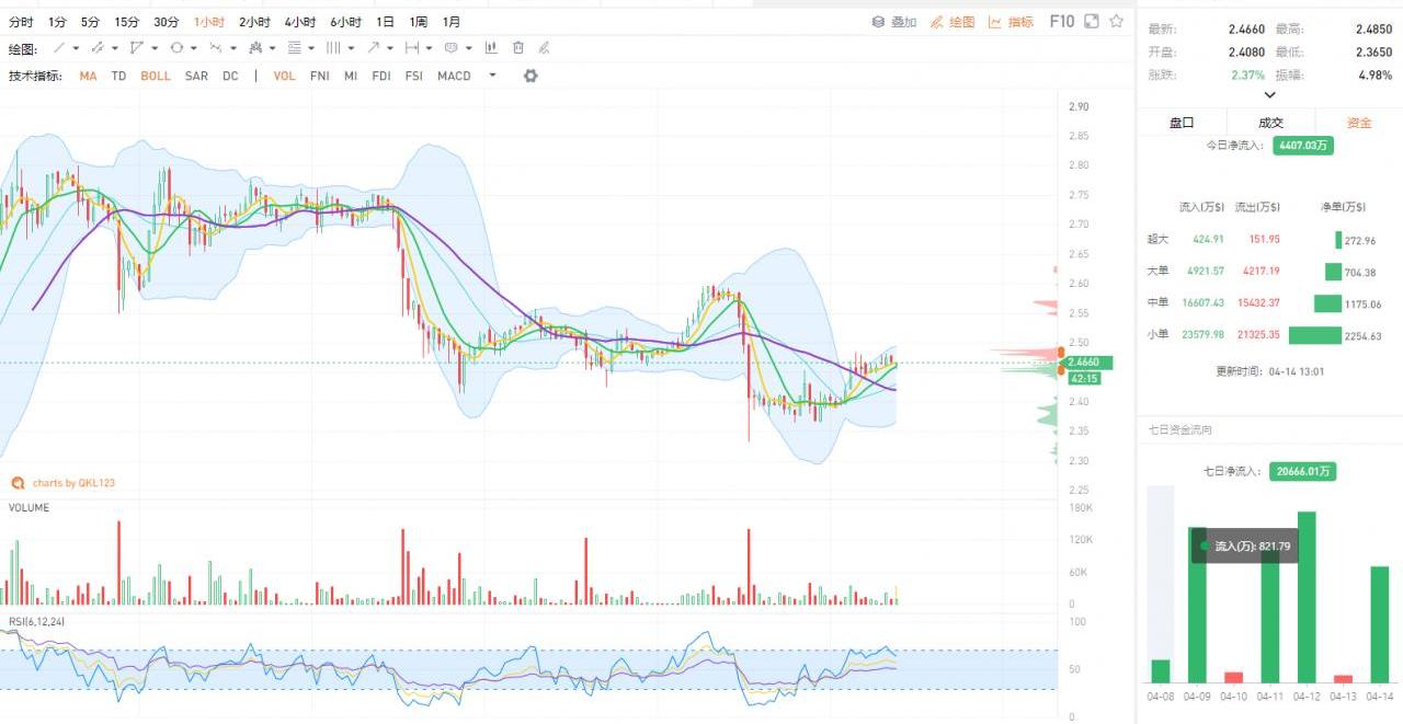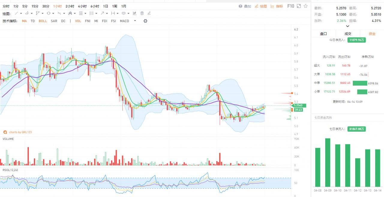 ETC站上前日震荡区间,资金流以小单流入为主,缩量反弹上行,短时不确定性较大。