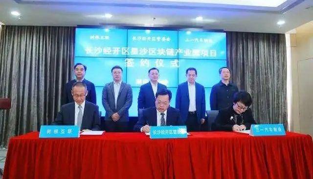 4月8日,长沙经开区与三一汽车制造有限公司、树根互联技术有限公司签订战略合作框架协议,以三一云谷为载体,共建力争5年内形成千亿级数字经济产业,打造成为全国一流的以区块链技术为特色的综合性数字经济产业示范区。