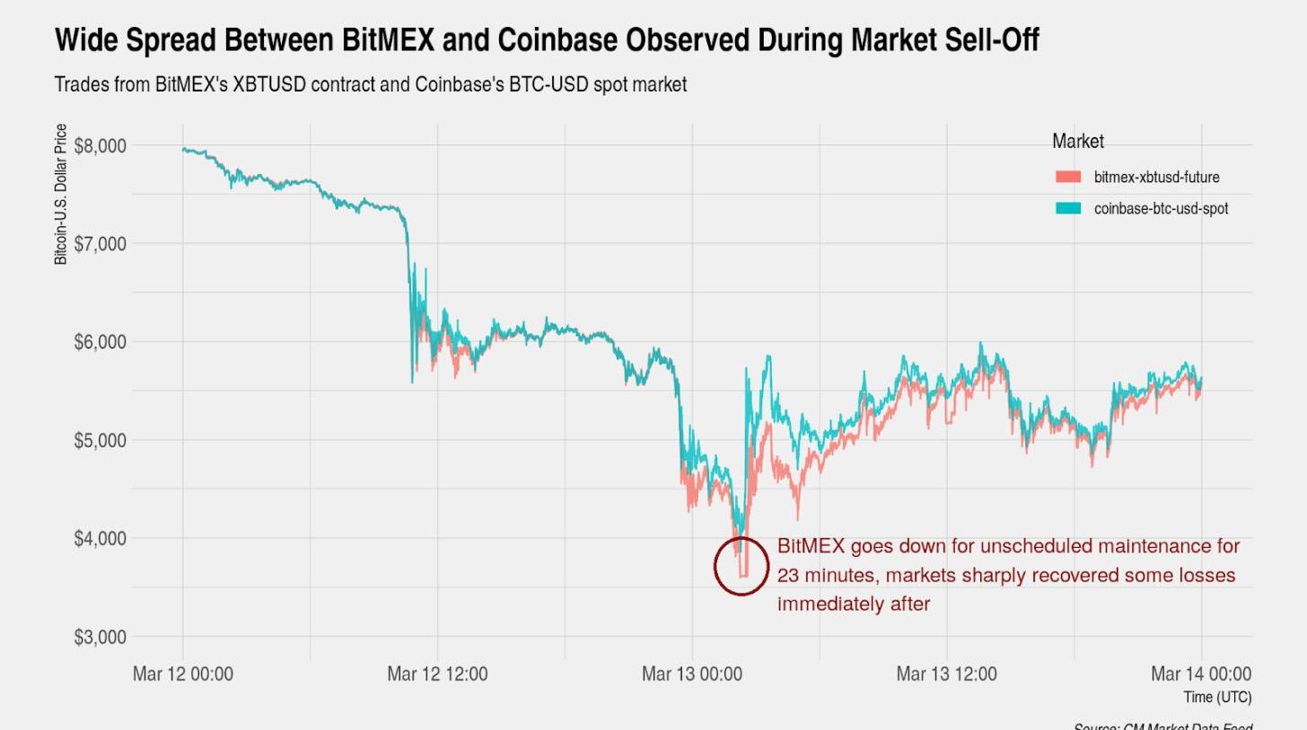 而在抛售潮期间,BitMEX和Coinbase之间的价差约为16%。这可能是因为永续杠杆的强制清算,放大了价格波动。在BitMEX出现“拔网线”现象之后,比特币市场经历了快速反弹,BitMEX最近发布了一个解释,详细说明了两次DDoS攻击。