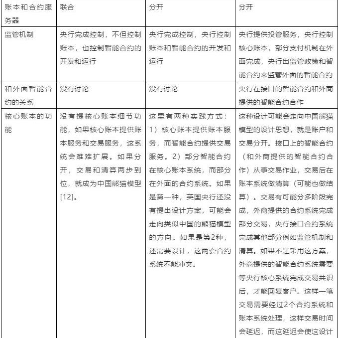 英国央行在讨论这3个方案只花了3段文字,但是我们解释却花了不少时间,而且这3个方案在许多方面有不同特性。由于英国央行没有提供细节,我们需要提供细节,因此我们提供的细节可能和他们想象的不一样,但是由于系统设计遇到的问题是科学性的问题,英国和中国面临的科学问题和解决方案都是类似的。