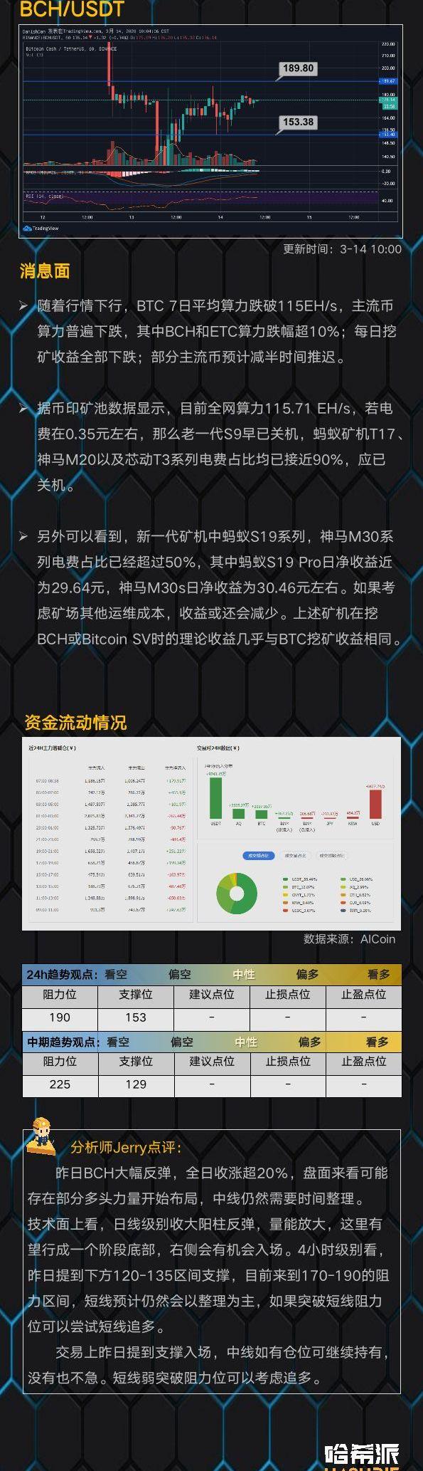 今日全网算力约122.37EH/s,全网难度约16.10T。BTC币价在短暂突破10000USD后小幅回落,矿机市场供需关系暂时处于平衡的状态。预测下次难度16.56T(2.85%),距离调整还剩还有9天,今日BTC收益:0.00001562BTC/T/天。[2020/5/9]