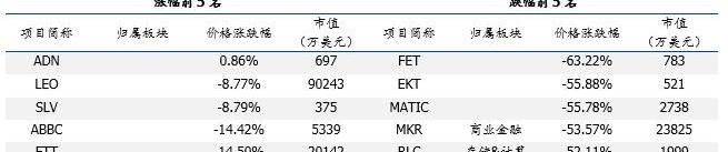 上周行情回顾:ChainextCSI100下跌33.76%,细分板块中交易支付表现最优。从细分板块来看,支付交易、AI优于ChainextCSI100平均水平,分别为-29.43%、-32.22%;物联网&溯源、文娱社交、商业金融、基础增强、基础链、存储&计算、纯币类表现均逊于ChainextCSI100平均水平,分别为-48.58%、-33.83%、-45.21%、-43.71%、-37.94%、-37.63%、-34.07%。
