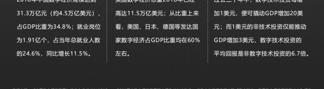 从测算角度来说,数字技术投资的平均回报是非数字技术投资的6.7倍左右。这个还是基于2018年的数据,按照19年包括2020年上半年的整个数据,因为其他行业基本上处于相对萎缩的状态,这样的对比会更加强烈。
