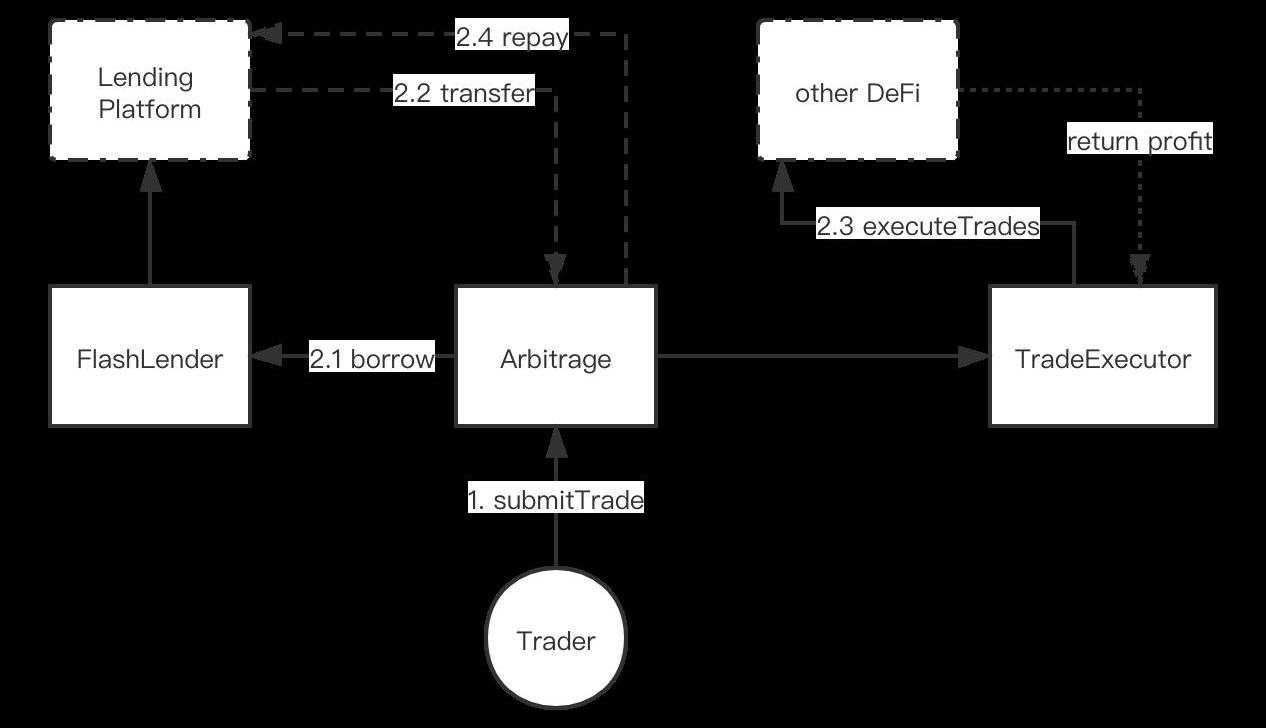 响应用户请求,调用FlashLender合约进行借贷操作,获取资金后调用TradeExecutor合约执行特别定义的资金操作