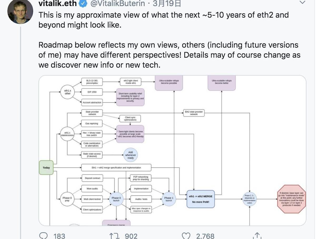 这是我对以太坊2.0在未来5-10年,以及之后的大致看法。下面的路线图反映了我自己的观点,其他人可能会有一些不同看法。当我们发现新信息或新技术时,细节当然会发生一些改变。