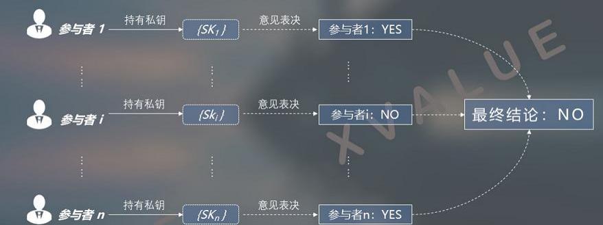 在这个情况下,最终结果必须得到持有该分布式私钥的参与者的支持,相当于持有该分布式私钥参与者对决策具有一票否决权,如图14所示。