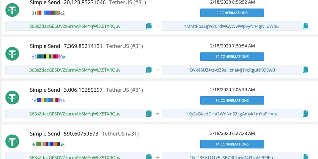 OMNIUSDT同样如此,承接原FCoin的OMNIUSDT的地址偶尔会向其它地址转账,很多地址特征来看确实是其它交易所的用户充值地址。