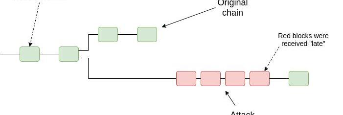 及时性检测器最基本的结构如下。对于客户端收到的每个数据块,客户端都会维护一个“是否是及时”的依据,它会说明客户端是否认为区块是“准时”收到的。其目的是在51%攻击中尝试区分攻击链和“正确”链: