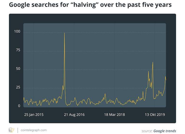 AtlantaDigitalCurrencyFund的首席投资官AlistairMilne表示,即将于2020年5月减半的比特币区块奖励尚未计入比特币的价格。谷歌趋势数据显示,人们对“减半”一词的搜索兴趣已飙升至2016年11月的水平。