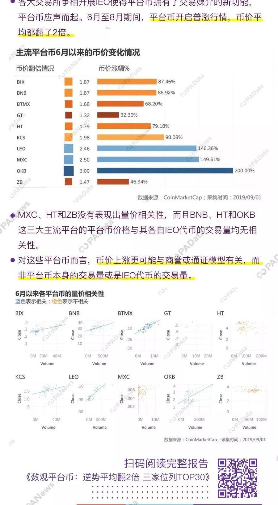 交易所是业内最吸睛和最吸金的业态,就2019年最吸金的IEO业务而言,所有IEO项目上架首日剧烈震荡,所有IEO项目代币的历史盈利倍数区间均值约为7.63倍。另外IEO还赋能了平台币,今年6月至8月期间,平台币平均翻两倍。
