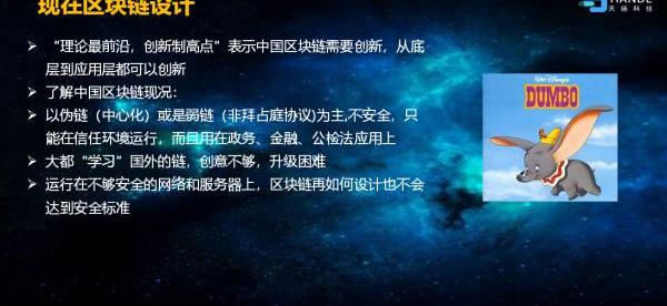 现在区块链体系是“小飞象”模型,飞行在高空,但又大又重