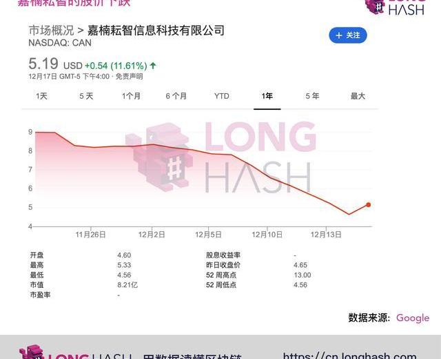 嘉楠耘智的发行价是9美元,初始供应量为1000万,筹资金额为9000万美元。截止到12月13日,其价格已经跌落至5.71美元,跌幅达近37%,由此也可以看见投资者对于未来的矿机业务有不小的疑虑。